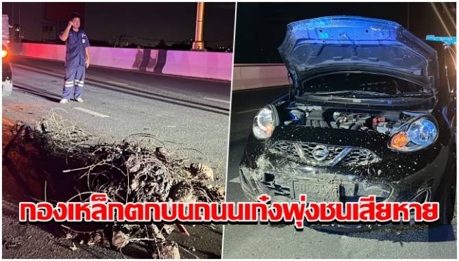 ชุ่ยกองเหล็กตกบนถนน! เก๋งพุ่งชนเสียหาย เผยต้องรับจบซ่อมเอง เหตุไม่อยู่ในเงื่อนไขประกันภัย