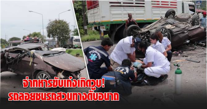 จ่าทหารขับเก๋งเกิดวูบ! รถลอยชนรถสวนทางดับอนาถ
