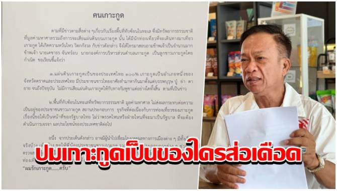ปมเกาะกูดเป็นของใครส่อเดือด นายก อบต.โพสต์เตือนกลุ่มการเมืองเคลื่อนไหวส่งผลกระทบการท่องเที่ยว