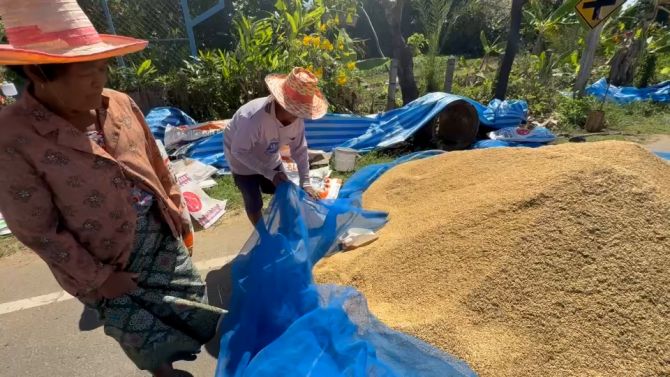 แต่ไม่เพียงพอเพราะปริมาณข้าวออกมาพร้อมกัน เกษตรกรจึงจำเป็นต้องเอาไปตากบนถนนลาดยางหรือถนนคอนกรีตตามหมู่บ้าน ถึงแม้จะผิด พรบ.จราจร แต่มันเป็นเรื่องจำเป็นเพราะข้าวมีความชื้น หากนำไปขายให้กับโรงสีก็จะถูกกดราคาค่าความชื้นอีก ประกอบกับเกษตรกรต้องการเก็บข้าวไว้รอราคา จึงจำเป็นต้องตากข้าวแล้วเอามาเก็บไว้ในยุ้งฉาง