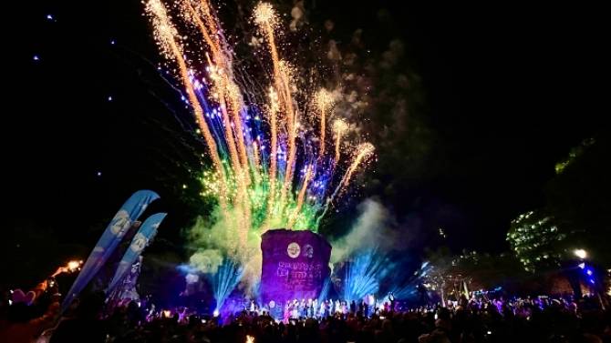 นางสาวอรอาภา โล่ห์วีระ รองผู้ว่าราชการจังหวัดชัยภูมิ นำนักท่องเที่ยวกว่า 5,000 คน ร่วมนับถอยหลัง 5,4,3,2,1,0 ร่วมศักราชปีใหม่ 2568 พร้อมจุดพลุเฉลิมฉลอง 583 นัด ระยิบระยับเต็มทองฟ้าบนมอหินขาว หิน 5 แท่ง สโตนเฮนท์เมืองไทย สวยงามเป็นที่ตื่นตาของนักท่องเที่ยวที่ในหนึ่งปีจะมีเพียงครั้งเดียวอีกด้วย