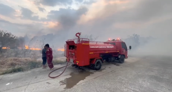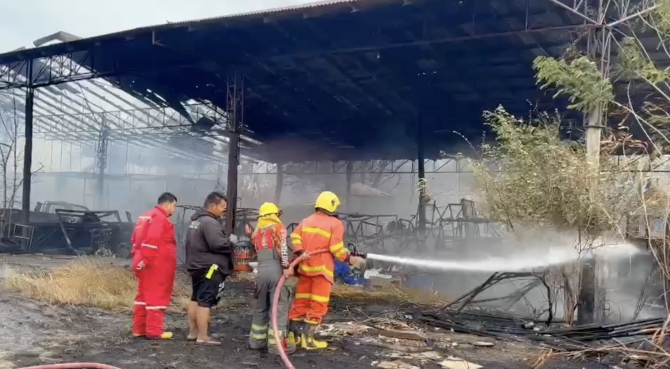ไฟไหม้ทุ่งลามไหม้โกดังสินค้าเสียหายทั้งหลัง ประเมินค่าเสียหายไม่ได้
