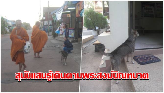 ฮือฮา! สุนัขแสนรู้เดินตามพระสงฆ์บิณฑบาตทุกเช้า ที่จ.อำนาจเจริญ