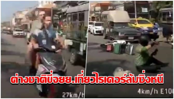 คลิปชัด! สองต่างชาติซิ่งจยย.เกี่ยวไรเดอร์พัทยารถล้มบาดเจ็บก่อนหลบหนี