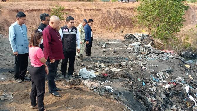 นายวีระพันธ์ ดีอ่อน ผู้ว่าราชการจังหวัดฯ กล่าวว่า หลังจากที่ได้รับแจ้งจากพลเมืองดี และผู้ปกครองท้องที่ว่ามีการลักลอบนำวัตถุมีพิษ เป็นขยะอุตสาหกรรมซึ่งเป็นบ่อลูกรังเก่า ขณะนี้ทางอุตสาหกรรมจังหวัดได้นำวัสดุไปพิสูจน์แล้ว ถ้าพบว่าเป็นวัตถุมีพิษจะต้องดำเนินการกับผู้ครอบครองที่ดิน และตำรวจจะต้องสืบสวนติดตามหาตัวผู้ที่นำขยะมาทิ้ง และขยายผลหาที่มาจากโรงงานไหน ใครปล่อยเอาขยะมาทิ้งในสถานที่แห่งนี้ แทนที่จะนำไปกำจัดให้ถูกต้องตามสุขลักษณะ มิฉะนั้นแล้วจะเกิดเป็นพิษเป็นภัยต่อพี่น้องประชาชน