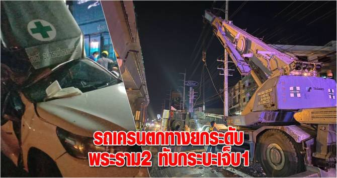 ระทึก! เครน 6 ล้อตกทางยกระดับพระราม2 ทับกระบะ เจ็บ 1