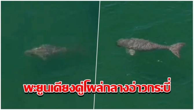 น่ายินดี! พบพะยูนเคียงคู่โผล่กลางอ่าวกระบี่ หลังฝนตกหนักฟื้นหญ้าทะเล
