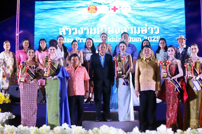ช่วงค่ำวันที่ 3 พ.ค.68 ที่เวทีกลางงานท่องเที่ยวประจวบคีรีขันธ์ มหัศจรรย์เมืองสามอ่าว และงานกาชาด ประจำปี 2568 บริเวณสวนสาธารณะเฉลิมพระเกียรติ ร.9 นายกิตติพงศ์ สุขภาคกุล รองผู้ว่าราชการ จ.ประจวบฯ เป็นประธานเปิดการประกวดสาวงามเมืองสามอ่าว 2025 (Miss Prachuap Khiri Khan 2025) โดยมีสาวงามผู้เข้าประกวดรวม 30 คน ขึ้นเวทีประชันโฉม พร้อมด้วย พญ.บุษกร สวัสดิ์แสน นายกเหล่ากาชาดจังหวัดประจวบฯ นางกฤษณา แผ่แสงจันทร์ วัฒนธรรมจังหวัดประจวบฯ นายสมไช เสียงใหญ่ ท้องถิ่นจังหวัดประจวบฯ หัวหน้าส่วนราชการ แขกผู้มีเกียรติ และนักท่องเที่ยวจำนวนมากร่วมเป็นสักขีพยานการตัดสิน ท่ามกลางเสียงกองเชียร์ของสาวงามแต่ละคน