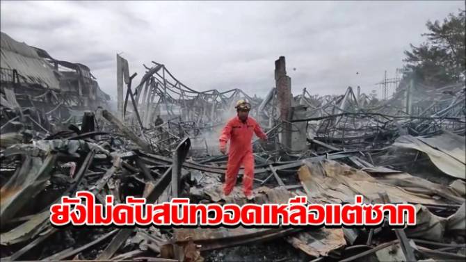 ยังไม่ดับสนิท! เพลิงไหม้ร้านพลาสติกวอดเหลือแต่ซาก ดับเพลิงฉีดน้ำเลี้ยงทั้งคืนหวั่นไฟปะทุอีกรอบ