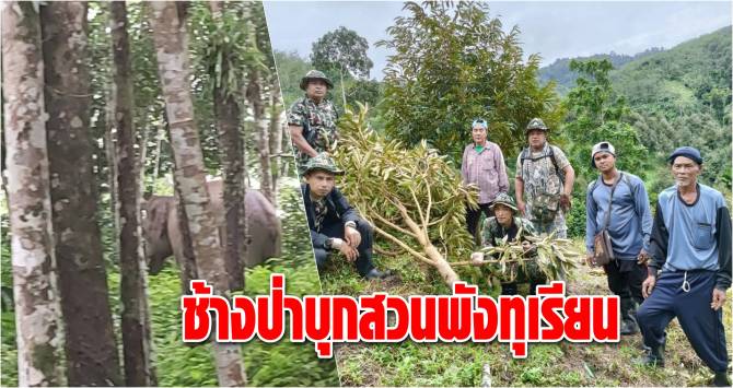 ช้างป่าบุกสวนชาวบ้านพิปูน พังทุเรียน–ท่อน้ำเสียหายหนัก