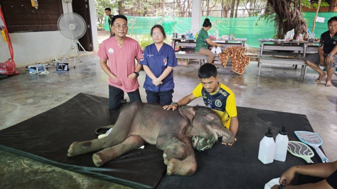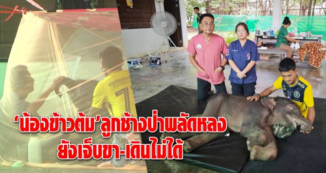 อัปเดตอาการ “น้องข้าวต้ม” ลูกช้างป่าพลัดหลง ยังเจ็บขา-เดินไม่ได้