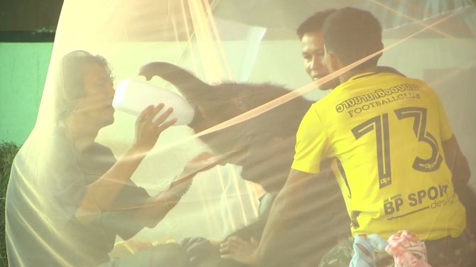 ความคืบหน้าอาการ “น้องข้าวต้ม” ลูกช้างป่าพลัดหลงจากแม่ในพื้นที่อำเภอทองผาภูมิ จังหวัดกาญจนบุรี ที่บาดเจ็บขาหลัง ล่าสุดได้ถูกเคลื่อนย้ายมารักษาต่อที่ศูนย์พัฒนาการจัดการสัตว์ป่าบึงฉวาก อำเภอเดิมบางนางบวช จังหวัดสุพรรณบุรี