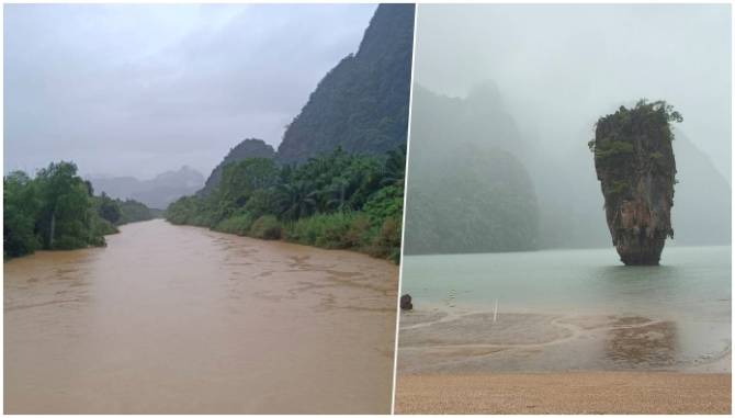 อิทธิพลพายุบัวลอย อุทยานแห่งชาติอ่าวพังงาฝนตกหนักลมกระโชกแรง เตือนผู้ใช้เรือระมัดระวังในการเดินเรือ