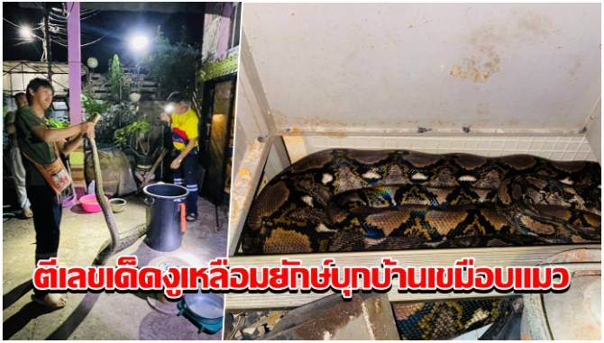 งูเหลือมยักษ์ยาวกว่า 5 เมตร หนีน้ำท่วมบุกเข้าบ้านเขมือบแมวรักอดีตนักข่าว คอหวยแห่ตีเลขเด็ด