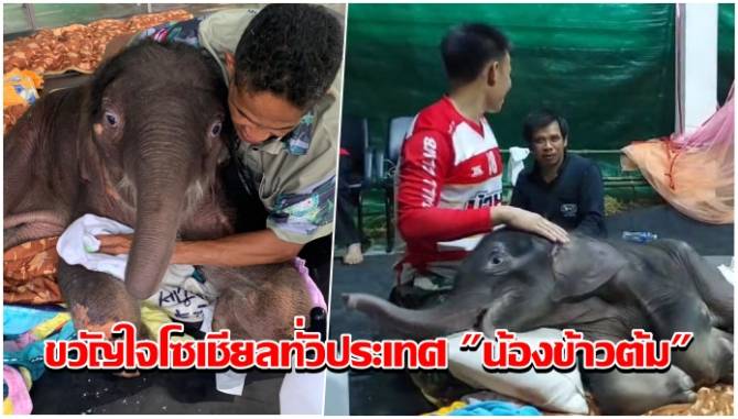 ขวัญใจโซเชียลทั่วประเทศ "น้องข้าวต้ม" ลูกช้างพลัดหลง ร่วมส่งกำลังใจติดตามอาการ