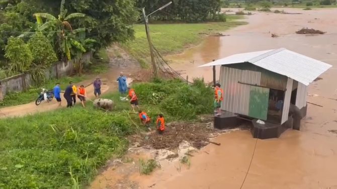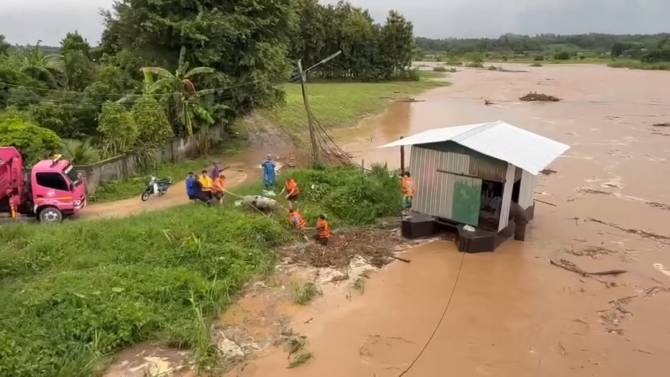 วันที่ 30 พ.ย 68 ผู้สื่อข่าวรายงานว่า จากผลกระทบของ พายุ บัวลอยที่ส่งฝนตกหนักต่อเนื่องในหลายพื้นที่ของจังหวัดพะเยา ทำให้เกิดน้ำป่าไหลหลากเข้าท่วมในหลายหมู่บ้าน โดยเฉพาะพื้นที่ อำเภอปงที่ได้รับผลกระทบอย่างหนักน้ำพัดกิ่งไม้ต้นไม้พืชผลทางการเกษตรและสัตว์เลี้ยงโดยบ้านสบขาม ตำบลขุนควร อำเภอปง จังหวัดพะเยา หลังมวลน้ำเชี่ยวได้พัดเอาหมูเลี้ยงของชาวบ้านตัวหนึ่ง ลอยไปติดกับ เครื่องสูบน้ำพลังไฟฟ้า ที่ใช้ระบายน้ำออกจากพื้นที่การเกษตรและบ้านเรือนชาวบ้าน