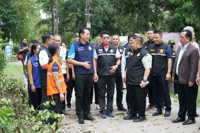 หนองคาย ระดมหน่วยงานช่วยโรงเรียนถูกพายุพัดต้นไม้หักโค่น