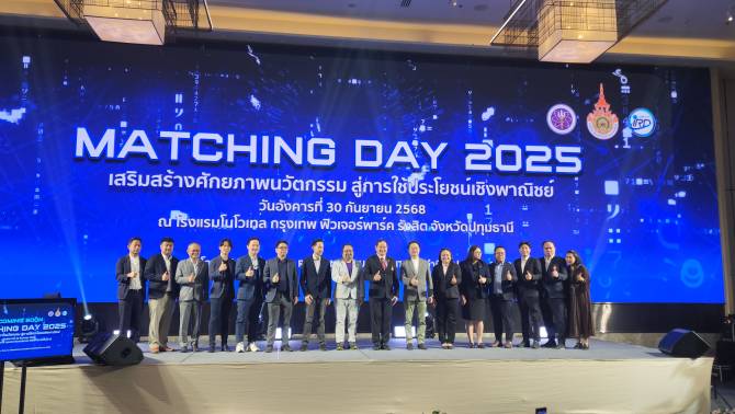 รศ.ดร.สมหมาย ผิวสอาด อธิการบดีมหาวิทยาลัยเทคโนโลยีราชมงคลธัญบุรี (มทร.ธัญบุรี) กล่าวว่า ทรัพย์สินทางปัญญาเป็นหัวใจสำคัญที่ช่วยให้งานวิจัยถูกนำไปใช้ประโยชน์ได้จริง ทั้งในเชิงธุรกิจและสังคม โดยเฉพาะในยุคที่เศรษฐกิจขับเคลื่อนด้วยนวัตกรรม สำหรับเวที Matching Day ที่เกิดขึ้นภายใต้โครงการการยกระดับศักยภาพทรัพย์สินทางปัญญาอย่างเป็นระบบฯ ระยะที่ 2 เพื่อเปิดโอกาสให้นักวิจัยได้นำเสนอผลงานที่พร้อมต่อยอดสู่เชิงพาณิชย์ ขณะเดียวกันผู้ประกอบการยังสามารถให้ข้อเสนอแนะเพื่อนำไปพัฒนาต่อ รวมถึงคัดเลือกผลงานที่มีศักยภาพสูงสุดสำหรับทำธุรกิจจริง และเป็นสร้างเครือข่ายความร่วมมือระหว่างมหาวิทยาลัยกับภาคส่วนต่าง ๆ ซึ่งจะช่วยผลักดันให้ก้าวไปตามเป้าหมายการพัฒนาที่ยั่งยืน “การเปิดเวทีเชื่อมโยงงานวิจัยกับภาคธุรกิจนี้ ช่วยให้ผลงานวิจัยที่มีคุณค่าไม่ถูกเก็บไว้บนหิ้ง แต่ยังเปิดโอกาสให้ผู้ประกอบการเข้าถึงนวัตกรรมใหม่โดยไม่ต้องเริ่มต้นจากศูนย์ สร้างรายได้และความยั่งยืนแก่นักวิจัยและธุรกิจ อีกทั้งยังช่วยขยายเครือข่ายความร่วมมือระหว่างมหาวิทยาลัย ภาคเอกชน และนักลงทุน ซึ่งมีส่วนสำคัญในการผลักดันเศรษฐกิจนวัตกรรมและยกระดับความสามารถในการแข่งขันของประเทศในระยะยาวร่วมด้วย”