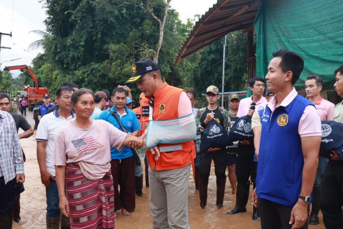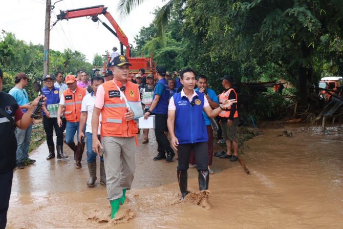 รองผู้ว่าฯแม่ฮ่องสอนลงพื้นที่แม่สะเรียง ติดตามสถานการณ์น้ำป่าหลากดินโคลนถล่มจากพายุบัวลอย