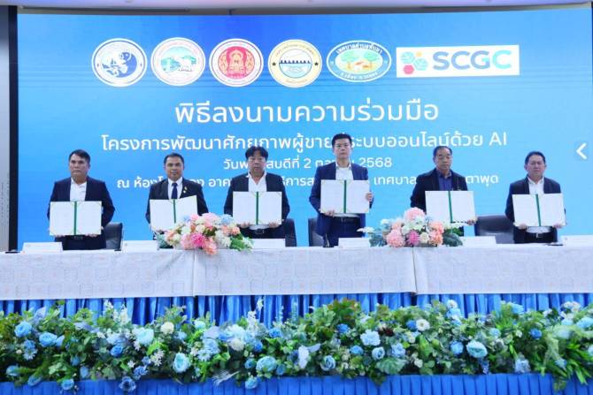 เมื่อวันที่ 2 ต.ค.68 เวลา 09.00 น.ที่ห้องประชุมศูนย์บริการสาธารณสุขเทศบาลนครมาบตาพุด อ.เมืองระยอง นายกิตติพงค์ อุตตมะเวทิน ผอ.วิทยาลัยเทคนิคระยอง และ ดร.พิเชษฐ ตั้งปัญญารัช ผู้ช่วยประธานเจ้าหน้าที่ปฏิบัติการและนวัตกรรม-การจัดการอุตสาหกรรมและความร่วมมือทางธุรกิจ บ.SCGC ร่วมลงนาม MOU โครงการพัฒนาศักยภาพผู้ขายสู่ระบบออนไลน์ด้วย AI กับ อปท.ในพื้นที่รวม 4 แห่ง ประกอบด้วย เทศบาลนครมาบตาพุด โดยนายถวิล โพธิบัวทอง เทศบาลตำบลบ้านฉาง นายนิรันดร์ ปรัชญกุล นายกเทศมนตรีฯ นายฉัตร แก่กล้า รองนายกเทศมนตรีฯ และเทศบาลตำบลมาบข่าพัฒนา โดยนายวร กลีอิ่ม นายกเทศมนตรีฯ โดยมี ปชช.ร่วมเป็นสักขีพยาน