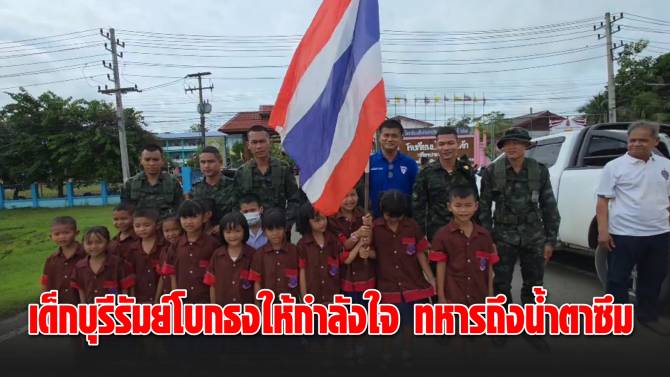 ทหารถึงกับน้ำตาซึม เด็กนักเรียนบุรีรัมย์โบกธงชาติให้กำลังใจ