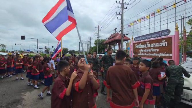 ด้าน ด.ญ.รัตนธร มาประจวบ นักเรียนชั้น ป.6 โรงเรียนถนนหัก กล่าวว่า ดีใจมากที่ทหารลงมาทักทาย พร้อมยืนยันว่าจะขอเป็นกำลังใจให้ทหารปฏิบัติหน้าที่สำเร็จ เพื่อปกป้องผืนแผ่นดินไทย