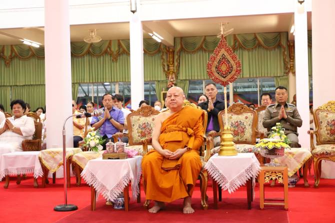 พิธีดังกล่าวมี พลโทปณต แสงเทียน รองอธิบดีกรมบังคับการ สำนักพระราชวัง เป็นประธานในพิธี พร้อมด้วย นายเอกวิทย์ มีเพียร ผู้ว่าราชการจังหวัดปทุมธานี, นายดงพล รุจิธรรมธัช ปลัดจังหวัดปทุมธานี, นางสาววัชรินทร์ มิ่งขวัญรุ่งเรือง หัวหน้าสำนักงานจังหวัดปทุมธานี, นายศรัณย์ เกตุทอง นายอำเภอสามโคก ตลอดจนข้าราชการ พุทธศาสนิกชน และประชาชนในพื้นที่ เข้าร่วมพิธีด้วยความสำนึกในพระมหากรุณาธิคุณและแสดงความเคารพศรัทธา