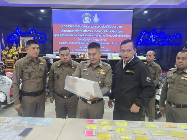 ของกลางที่ตรวจยึดได้ ประกอบด้วย รถจักรยานยนต์ 53 คัน รถยนต์ 2 คัน สมุดบันทึกรับจำนำ 2 เล่ม และเอกสารรับจำนำ 121 ชุด ผู้ต้องหาคือ นายวิทยา (สงวนนามสกุล) อายุ 63 ปี ชาว ต.เสม็ด อ.เมืองบุรีรัมย์ อดีตอาสาสมัครทหารพราน ตั้งตัวเป็นผู้รับจำนำรถในพื้นที่มานานกว่า 10 ปี โดยรับจำนำรถจากลูกค้า แล้วรวบรวมส่งขายต่อให้พ่อค้าชาวกัมพูชาผ่านช่องทางธรรมชาติ แต่ในช่วงที่ด่านชายแดนปิด รถจึงถูกกักไว้ที่บ้านจำนวนมาก
