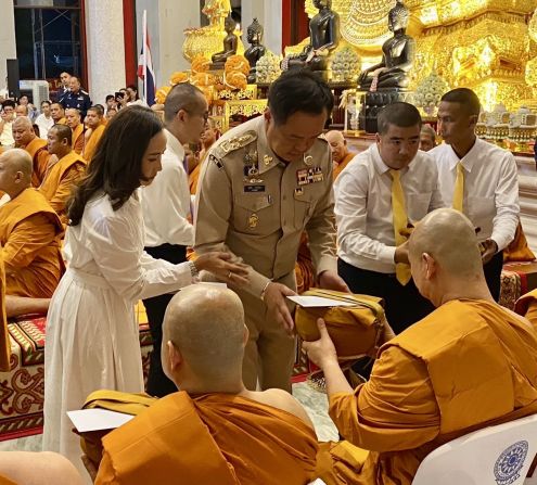 โดยมีนางสาวธนนนท์ นิรามิษ ภรรยานายอนุทิน ชาญวีรกูล นายกรัฐมนตรี และรัฐมนตรีว่าการกระทรวงมหาดไทย เป็นประธานอุปสมบทพระ 20 รูป โดยมีนายเอกวิทย์ มีเพียร ผู้ว่าราชการจังหวัดปทุมธานี นายภาสกร บุญญลักษม์ ผู้ว่าราชการจังหวัดระยอง พล.ต.ท.คำรณวิทย์ ธูปกระจ่าง นายก อบจ.ปทุมธานี และหัวหน้าส่วนราชการ เข้าร่วมในพิธี ขณะที่พระวัชรญาณมุนี (วิ) หรือพระอาจารย์เทียนชัย ชยทีโป เป็นประธานฝ่ายสงฆ์