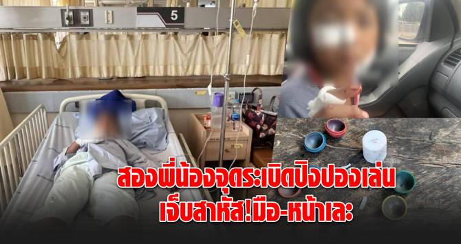 บุรีรัมย์ – สองพี่น้องวัย 8 และ 9 ปี เอาระเบิดปิงปองไปจุดเล่นจนระเบิดใส่ มือและใบหน้าได้รับบาดเจ็บสาหัส พ่อเผยซื้อมาไว้ไล่นกตอนทำนาปรังเมื่อ 3 ปีก่อน เก็บไว้อย่างดีจนลืม ไม่คิดว่าลูกจะค้นเจอไปจุดเล่น เบื้องต้นเด็กดูวิธีประกอบจากยูทูบก่อนทำตาม