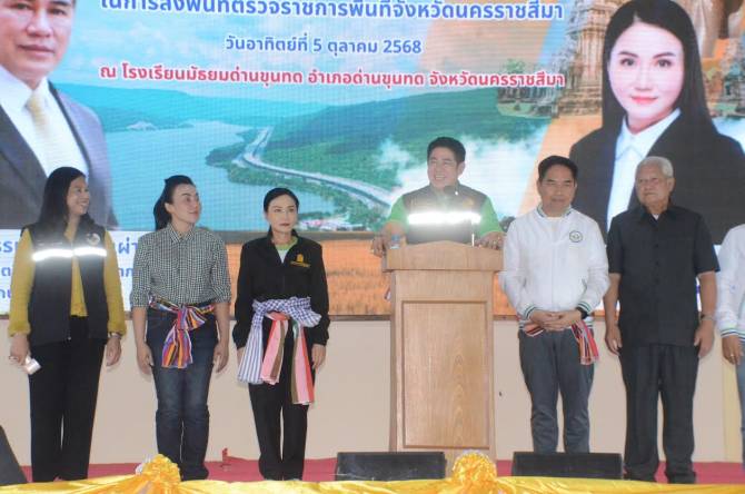 นครราชสีมา – วันนี้ (5 ตุลาคม 2568) ที่โดมเอนกประสงค์ โรงเรียนมัธยมด่านขุนทด อ.ด่านขุนทด จ.นครราชสีมาร้อยเอกธรรมนัส พรหมเผ่า รองนายกรัฐมนตรี และรัฐมนตรีว่าการกระทรวงเกษตรและสหกรณ์พร้อมด้วย ศาสตราจารย์ ดร.นฤมล ภิญโญสินวัฒน์ รัฐมนตรีว่าการกระทรวงศึกษาธิการ หัวหน้าพรรคกล้าธรรมได้ลงพื้นที่ จ.นครราชสีมา เพื่อพบปะพี่น้องประชาชน โดยมี นายชัยวัฒน์ ชื่นโกสุม ผู้ว่าราชการจังหวัดนครราชสีมาหัวหน้าส่วนราชการ ผู้นำท้องถิ่น กำนัน ผู้ใหญ่บ้าน กลุ่มสตรี และประชาชนในพื้นที่ อ.ด่านขุนทด และ อ.เทพารักษ์ให้การต้อนรับกว่า 2,000 คน