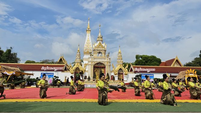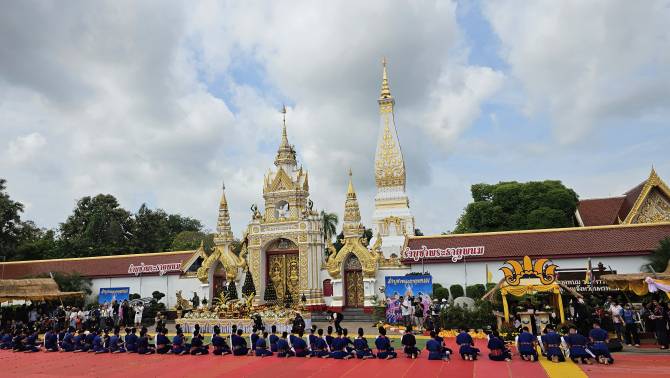 วันที่ 7 ตุลาคม 2568 บริเวณหน้าวัดพระธาตุพนมวรมหาวิหาร อำเภอธาตุพนม จังหวัดนครพนม เต็มไปด้วยประชาชนและนักท่องเที่ยวที่เดินทางมาร่วมพิธีถวายเครื่องบูชาและรำบูชาพระธาตุพนม สิ่งศักดิ์สิทธิ์คู่บ้านคู่เมือง ซึ่งเป็นที่ประดิษฐานของพระอุรังคธาตุ (กระดูกส่วนหน้าอกของพระสัมมาสัมพุทธเจ้า) ตามความเชื่อพื้นถิ่น