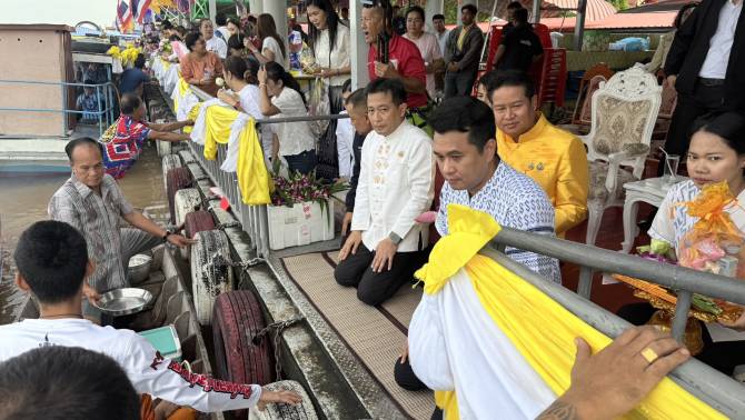 สืบสานประเพณี! ทต.บ้านกลางนำทีมทำบุญตักบาตรพระร้อยทางเรือในเทศกาลออกพรรษา