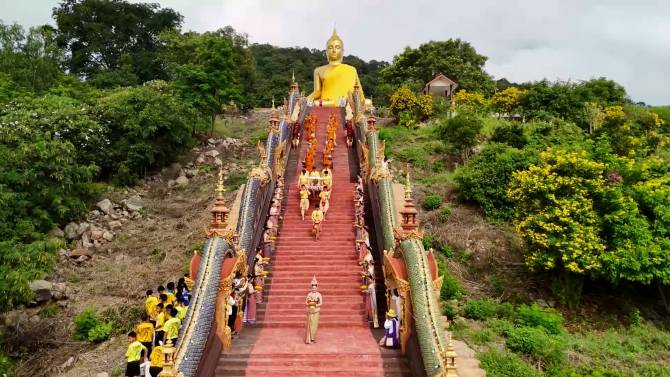 พุทธศาสนิกชนร่วมตักบาตรเทโวบันไดพญานาคที่วัดเขาพลอง