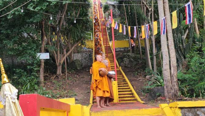 ชาวบ้านฉาง แห่ตักบาตรวันออกพรรษาวัดคีรีวภาวนารามคึกคัก