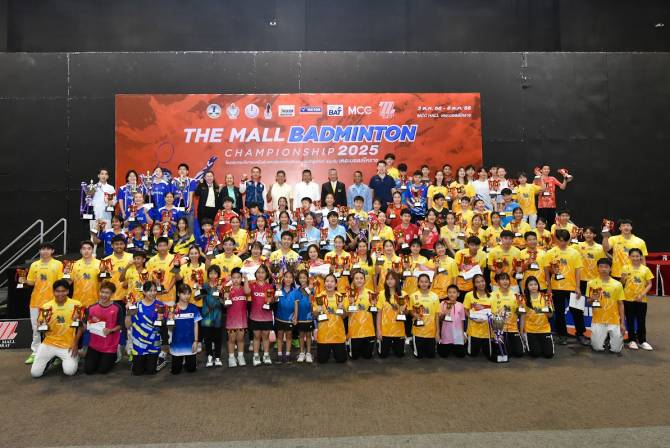 นครราชสีมา – วันนี้ (8 ตุลาคม 2568) ที่ MCC HALL ชั้น 3 ศูนย์การค้าเดอะมอลล์ อำเภอเมือง จังหวัดนครราชสีมา นายกิตติศักดิ์ ธีระวัฒนา รองผู้ว่าราชการจังหวัดนครราชสีมา พร้อมด้วย พลอากาศเอก มณฑล สัชฌุกร นายกสมาคมกีฬาแบดมินตันแห่งประเทศไทยในพระบรมราชูปถัมภ์ และนางสาวชัญญ์ญาณ์ ธำรงวินิจฉัย ผู้จัดการใหญ่กิจกรรมการตลาด บริษัท เดอะมอลล์ กรุ๊ป จำกัด ร่วมพิธีมอบรางวัลและแสดงความยินดีกับนักกีฬาแบดมินตันที่ได้รับรางวัลจากการแข่งขัน “THE MALL BADMINTON CHAMPIONSHIP 2025”