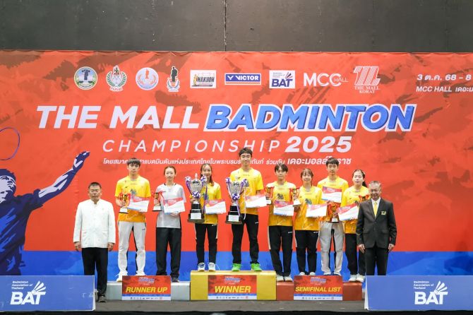 - โคราชปิดฉากแบดมินตัน 2025 บ้านทองหยอดคว้าถ้วยพระราชทาน 8 ต.ค. 2568