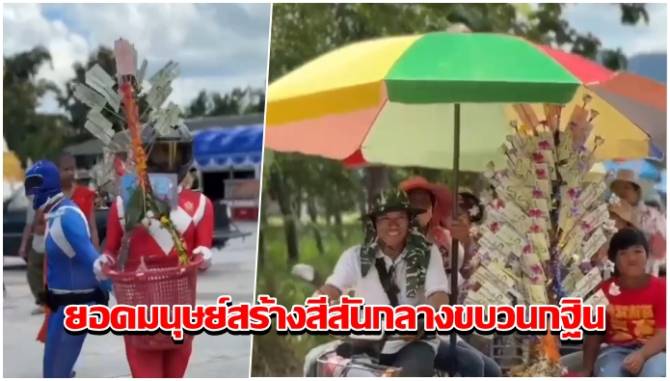 งานบุญกฐินสุดคึกคัก! ยอดมนุษย์ สร้างสีสันกลางขบวนยอดกฐินกว่า 2.5 แสนบาท