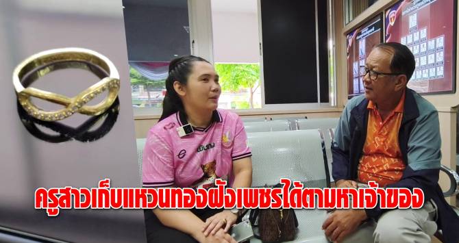 ครูสาวอุดรฯ เก็บแหวนทองฝังเพชรได้ รีบแจ้งตำรวจตามหาเจ้าของ