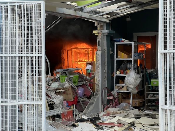 ใกล้จุดเกิดเหตุพบรถกระบะโตโยต้า 1 คัน และรถจักรยานยนต์ 2 คัน ถูกซากบ้านและเศษหินปูนถล่มทับจนเสียหาย เจ้าหน้าที่สามารถควบคุมเพลิงได้ในเวลาต่อมา พร้อมตรวจสอบหาสาเหตุของการระเบิดและไฟไหม้
