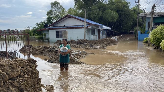 แม้สถานการณ์น้ำในพื้นที่ลุ่มต่ำท้ายเขื่อนเจ้าพระยาจะเริ่มคลี่คลายและระดับน้ำลดลงบ้าง แต่ยังมีน้ำท่วมขังหลายจุด เริ่มส่งกลิ่นเน่าเหม็น ชาวบ้านกว่า 600 ครัวเรือนยังคงต้องอาศัยริมถนน เจ้าหน้าที่หน่วยงานต่าง ๆ ลงพื้นที่ให้การช่วยเหลือต่อเนื่อง ทั้งแจกถุงยังชีพ สูบน้ำออกจากพื้นที่ และแจกสารบำบัดน้ำเสียเพื่อบรรเทาความเดือดร้อน