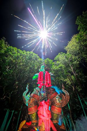 คืนวันนั้น พระอาจารย์ได้ฝันว่าปีนหน้าผาสูงชันขึ้นไปจนถึงยอด และได้ยินเสียงคนโห่ร้องว่า “สำเร็จแล้ว!” ซึ่งเมื่อสะดุ้งตื่นขึ้นมา จึงเชื่อว่าเป็นนิมิตดีและเป็นสัญญาณให้เดินหน้าสร้างองค์ปู่ท้าวเวสสุวรรณทั้ง 8 องค์ โดยยึดตามหลักธรรม “อริยมรรคมีองค์ 8” ที่เป็นหนทางแห่งความพ้นทุกข์ในพระพุทธศาสนา
