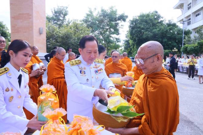 ผู้ว่าฯระยอง นำตักบาตรข้าวสารอาหารแห้ง เนื่องในวันคล้ายวันสวรรคต ร.9