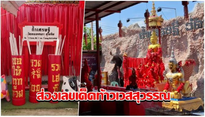 ผู้สื่อข่าวรายงานว่า เมื่อเวลา 09.00 น. วันที่ 13 ต.ค. ที่บริเวณหน้าถ้ำเศรษฐี วัดหนองทอง หมู่11 ต.บ้านสวน อ.เมือง จ.สุโขทัย เป็นที่ประดิษฐานองค์ท้าวเวสสุวรรณ ชาวบ้านต่างเดินทางมาเพื่อกราบไหว้ขอโชคลาภจากองค์ท้าวเวสสุวรรณ ด้านหน้าถ้ำเศรษฐีอย่างเนื่องแน่น เนื่องจากอีกเพียง 3 วันเป็นวันออกฉลากกินแบ่งรัฐบาลงวดวันที่ 16 ต.ค. 68 แล้วทำให้ชาวบ้านและบรรดาคอหวยและนักแสวงโชคต่างเดินทางมาหาเลขเด็ดจากธูปที่จุดบูชา องค์ท้าวเวสสุวรรณ วัดหนองทอง เพื่อนำไปเสี่ยงโชค บางรายได้เดินทางมาแก้บนหลังประสบความสำเร็จในหน้าที่การงาน และได้รับโชคก้อนโตในงวดที่ผ่านมา นอกจากนี้ชาวบ้านที่เดินทางมายังได้ส่องเลขเด็ดจากธูปที่จุดด้านหน้าองค์ท้าวเวสสุวรรณ