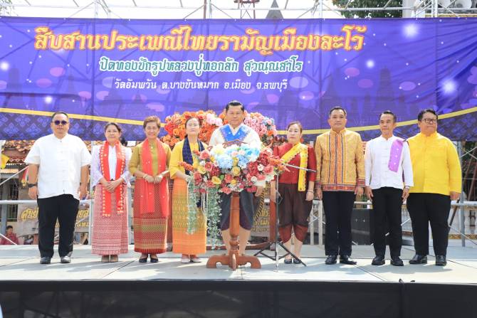 วันที่ 13 ตุลาคม 2568 เวลา 09.30 น. ที่ วัดอัมพวัน ตำบลบางขันหมาก อำเภอเมืองลพบุรี จังหวัดลพบุรี นายปรัชญา เปปะตัง รองผู้ว่าราชการจังหวัดลพบุรี เป็นประธานเปิดงานสืบสานประเพณีไทยรามัญเมืองละโว้ ปิดทองชักพระรูปเหมือนหลวงปู่ทอ-กรัก สุวรรณะสาโร ประจำปี พ.ศ. 2568 โดยมีพระครูอมรสมณคุณ เจ้าอาวาสวัดอัมพวัน พระปัญญาวุฒิ วุฑฒิโก ผู้ช่วยเจ้าอาวาสวัดอัมพวัน นายรัฐพล ธุรพันธ์ นายอำเภอเมืองลพบุรี หัวหน้าส่วนราชการ พุทธศาสนิกชนและศิษยานุศิษย์เข้าร่วม เป็นจำนวนมาก