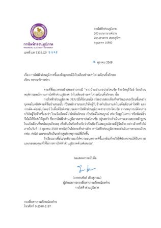 ล่าสุด เมื่อวันที่ 14 ตุลาคม 2568 นายธนพันธ์ เตียสุวรรณ ผู้อำนวยการกองสื่อสารภาพลักษณ์องค์กร การไฟฟ้าส่วนภูมิภาค (PEA) ได้ส่งหนังสือชี้แจงกรณีดังกล่าว ระบุว่า