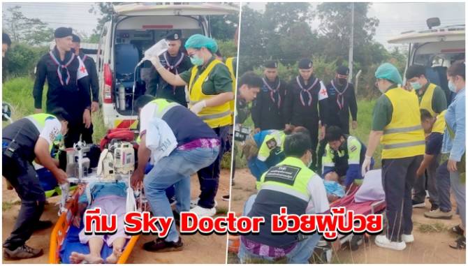 ทีม Sky Doctor ช่วยผู้ป่วยมีอาการแน่นหน้าอกหายใจไม่ออกส่งโรงพยาบาล