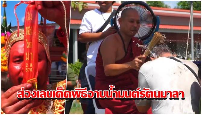 ส่องเลขเด็ดพิธีอาบน้ำมนต์รัตนมาลารับแจกผ้ายันต์พ่อขุนช้างมหาเศรษฐี