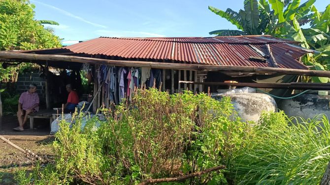 นายสนองอาศัยอยู่กับ มารดาวัย 89 ปี ชื่อนางเล็ก และ หลานสาววัย 12 ปี ชื่อน้องณัฐ ในบ้านไม้ยกพื้นสูงเพียง 40 เซนติเมตร พื้นที่ประมาณ 6×6 เมตร สภาพทรุดโทรมมาก พื้นปูด้วยไม้อัด หลังคามุงสังกะสี ฝาบ้านทำจากไม้ระแนงและไม้อัด มีพื้นที่เดินได้เพียงบริเวณที่นอนเท่านั้น บ้านตั้งอยู่ในที่ดินของมารดาเนื้อที่ประมาณ 2 งาน