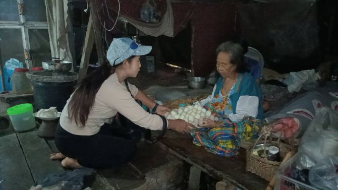 น้องณัฐอาศัยอยู่กับยายในเพิงพักสังกะสี ฝาบ้านปะติดปะต่อด้วยผ้ายางและถุงพลาสติกขนาดใหญ่ ไม่มีประตูปิด ต้องกางมุ้งนอนกับยายทุกคืน เด็กหญิงดูแลยายด้วยการหุงข้าว หาน้ำ และล้างถ้วยชามทุกเช้า รวมถึงหาข้าวถวายพระพุทธรูปที่ตั้งไว้ข้างที่นอนของยายก่อนทุกมื้อเช้า